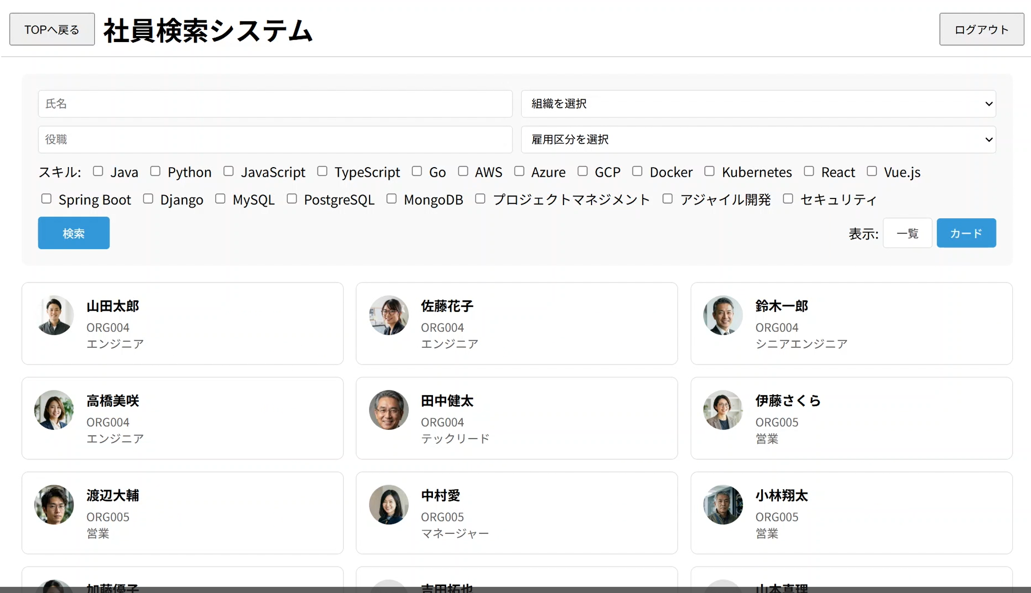 ログイン後TOP画面が表示され、そのリンクから社員検索システムに遷移します。