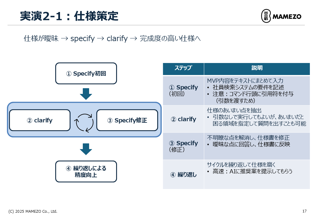 - 実践①:仕様策定 - specify → clarify の反復