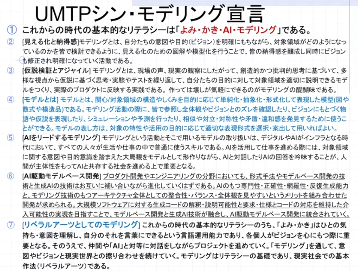 当日発表された UMTP シン・モデリング宣言:講演資料のスクリーンショットから