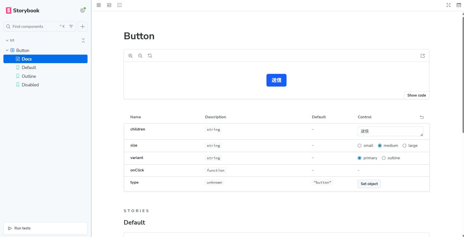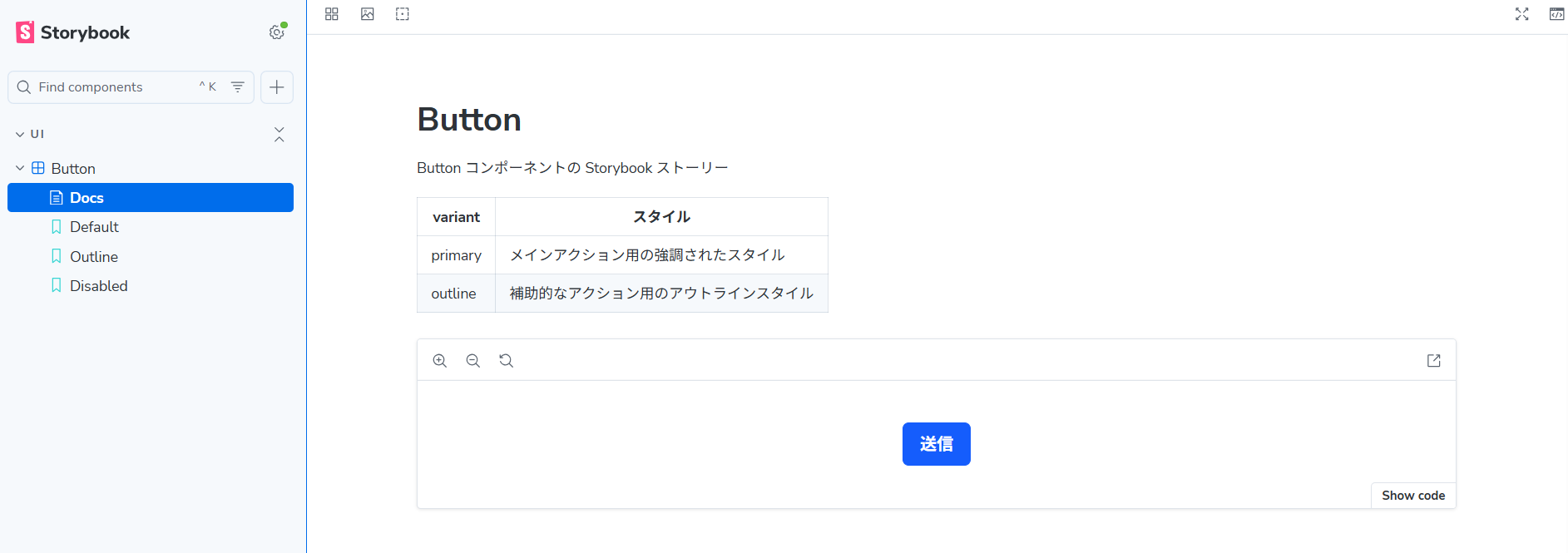 tags: ["autodocs"], // ← Document生成をすべてのStoryで有効化する