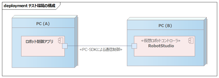 éçºæã«äœ¿çšããããŒã«ãšããŠã¯ PC-SDK ã®ä»ã« RobotStudio[3] ããããŸããRobotStudioã¯ä»®æ³ããããã³ã³ãããŒã©ãå å ããGUIã¢ããªã±ãŒã·ã§ã³ã§ãªãã©ã€ã³ãã£ãŒãã³ã°ãè¡ããã¢ããªã±ãŒã·ã§ã³ã§ããPC-SDKã¯ããã®ä»®æ³ããããã³ã³ãããŒã©ã«å¯ŸããŠãæ¥ç¶ã§ããããRobotStudioãããã°å®æ©ãç¡ããŠãPC-SDKã«ããéçºãã§ããŸãã